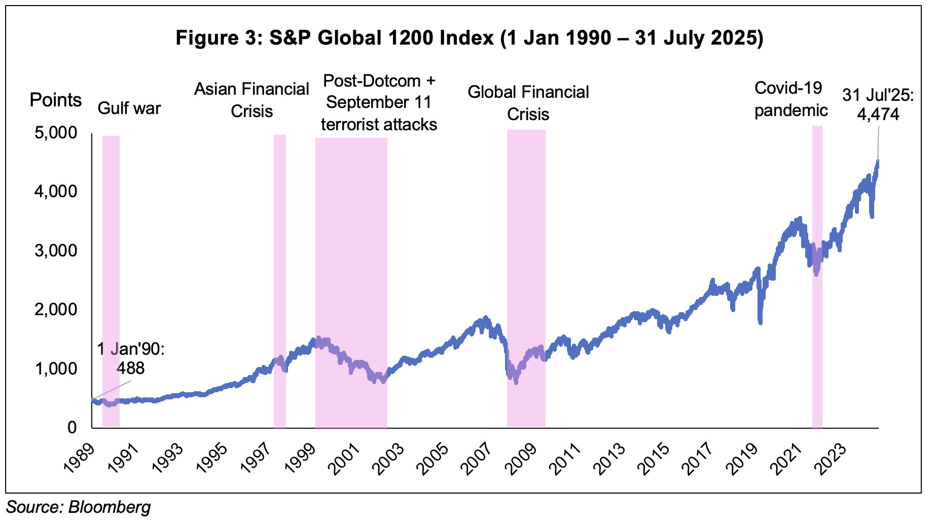 6. Equity investors should stay invested for the long run Whether in a soft or hard landing, equity investors should stay invested throughout the economic cycle. In the last three decades since 1990, despite several economic and financial crises, the global equity markets (as proxied by the S&P Global 1200 Index) have recovered from short-term market setbacks (Figure 3). ![]() Conclusion Expectations for a soft or hard landing for the global economy can affect the equity markets in the near term. Nonetheless, as equity markets tend to reflect the underlying fundamentals of the economies over the long term, investors in equity funds should adopt a long-term investment perspective and to stay invested by practising Ringgit Cost Averaging (RCA) to ride through the economic and market cycles. |